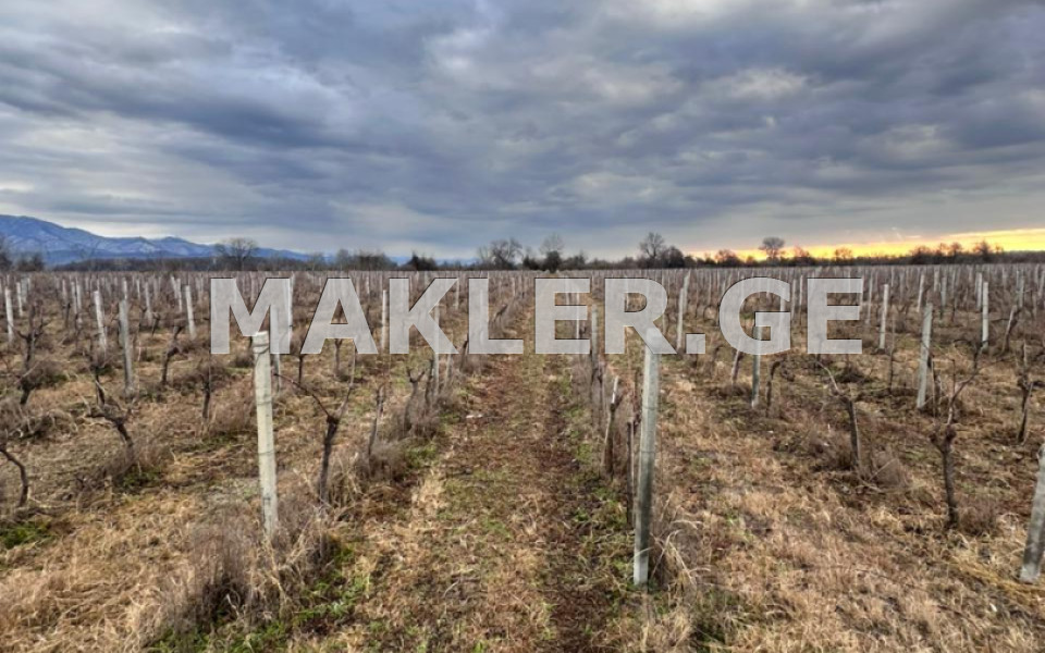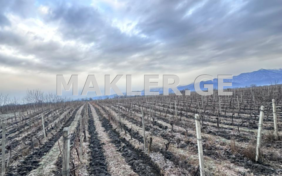 مزرعة عنب مساحتها 6 هكتارات معروضة للبيع في منطقة كاريلي. المزرعة مزروعة بعنب سابيرافي، من منطقة كيندزمارولي. تم إنجاز المرحلة الأولى من الصيانة - التقليم. المسافة بين الصفوف 2.50 متر، وبين الكروم 1.35 متر. استُخدمت أعمدة خرسانية وأسلاك مجلفنة (5 خيوط). ا