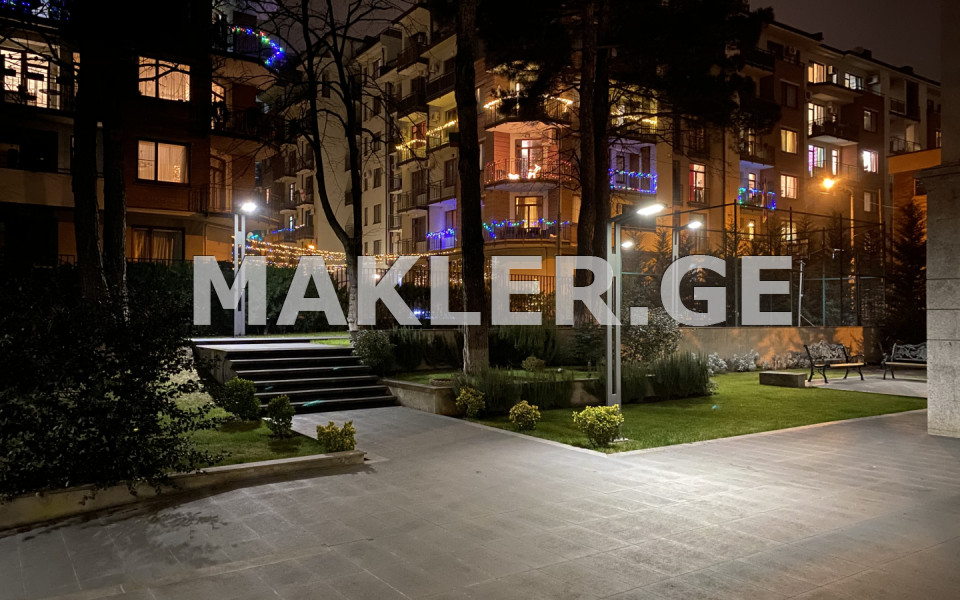 Flat for rent in Bendukidze complex, with all necessary furniture and appliances (dishwasher). Has its own underground parking. The complex serves 24 hour security