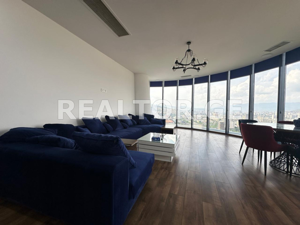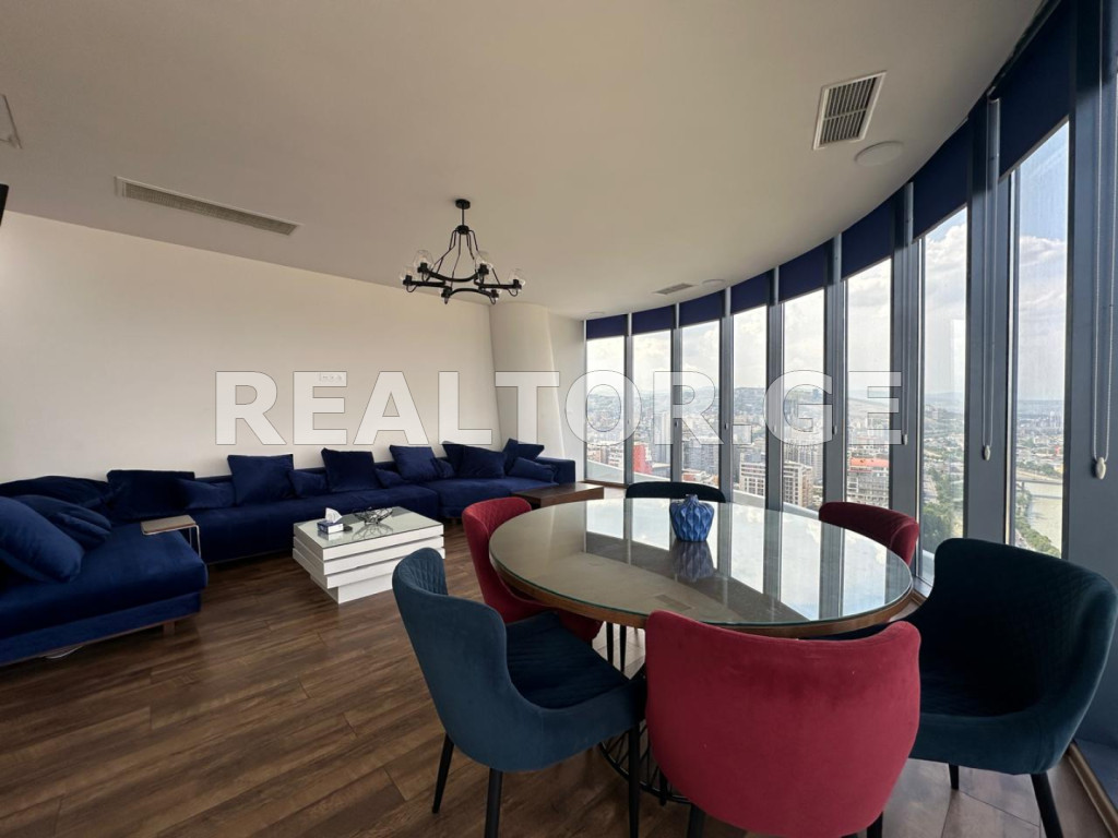 A 3-roomed apartment for rent in King David, with 2 bedrooms and 2 bathrooms, has beautiful views over the Tbilisi. The apartment is equipped with necessary furniture and appliances. The building is served by a concierge