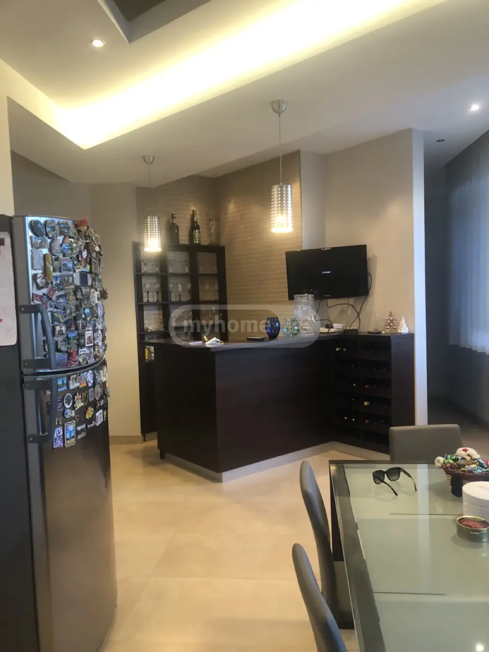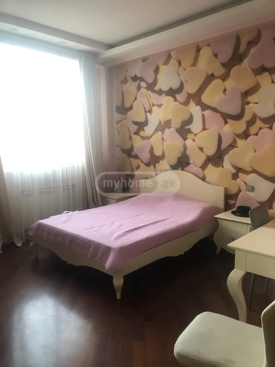 4-room apartment for rent in the prestigious building of Tamarashvili Axis, 13th floor, 4 rooms, separate kitchen, fireplace, 1 master bedroom, jacuzzi. Large storage room with closets on the balcony, furnished with necessary furniture and appliances