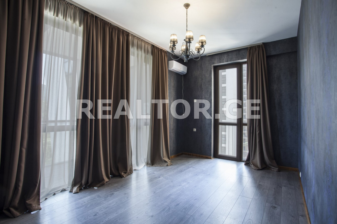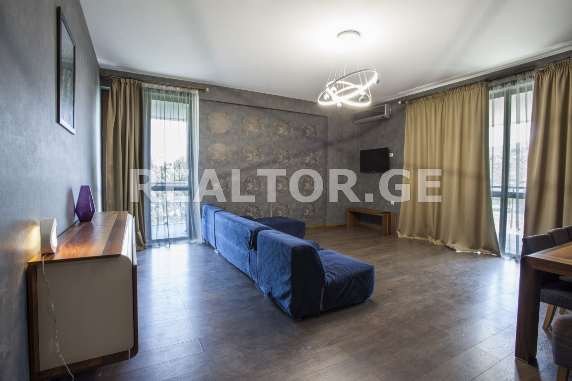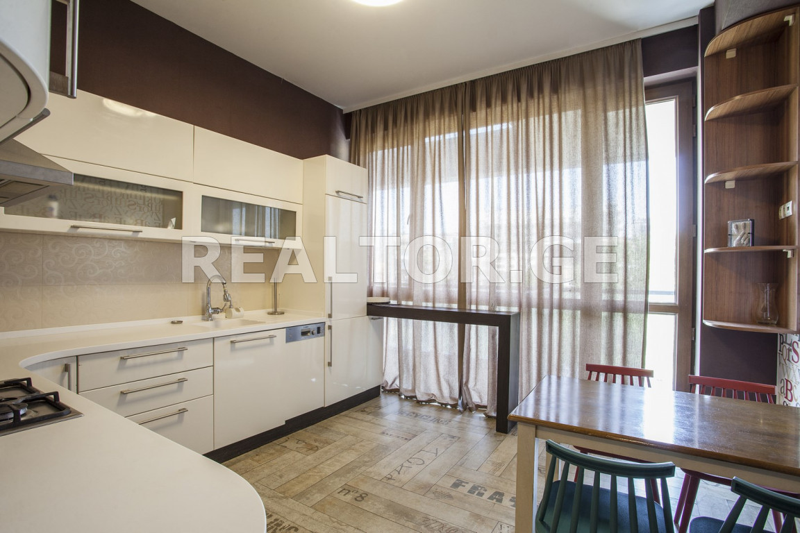 A four-room apartment is for rent in the new Axis complex on Saburtalo on Givi Kartozia Street. In the quarter there are three bedrooms, each of which has a balcony with a view of the hippodrome. Quartz insulated kitchen and two toilets. The apartment is equipped with all the necessary equipment, and the furniture in the bedrooms will be supplied according to the client"s wishes. In the quarter there is also a veranda with a view of the hippodrome.
