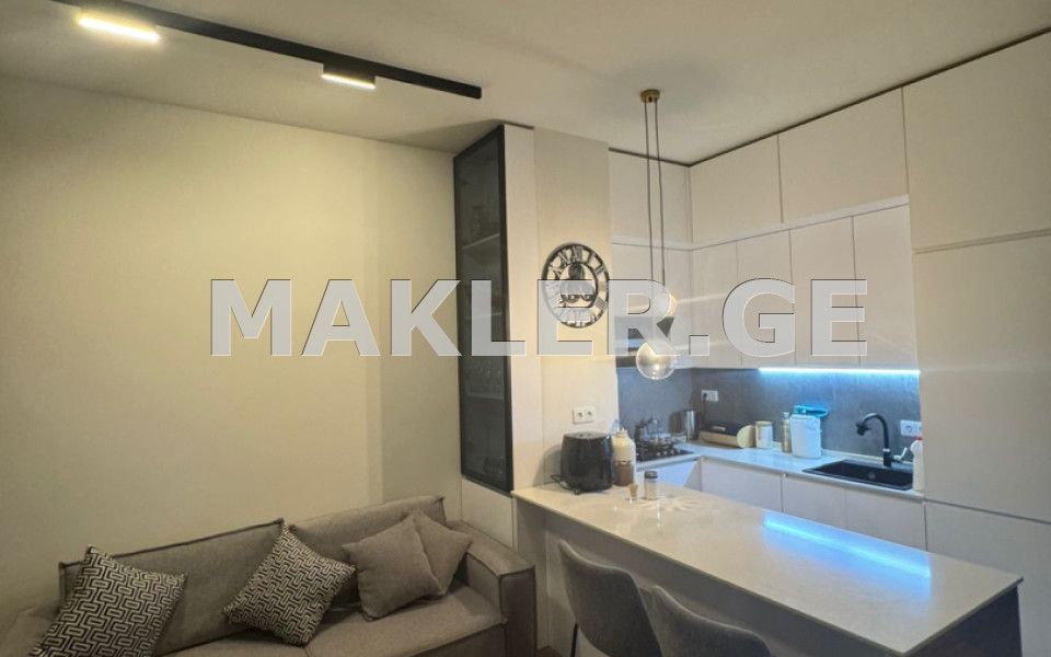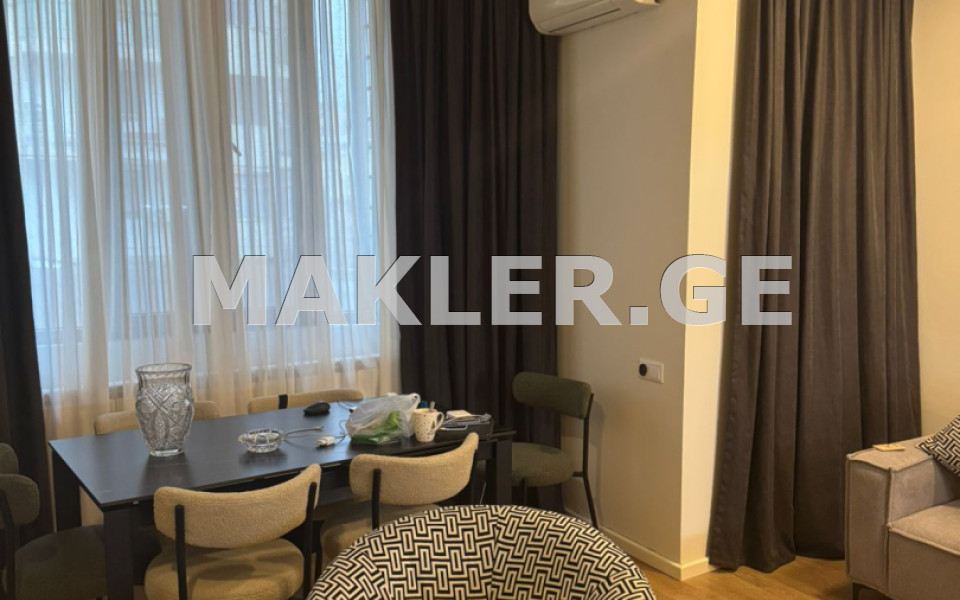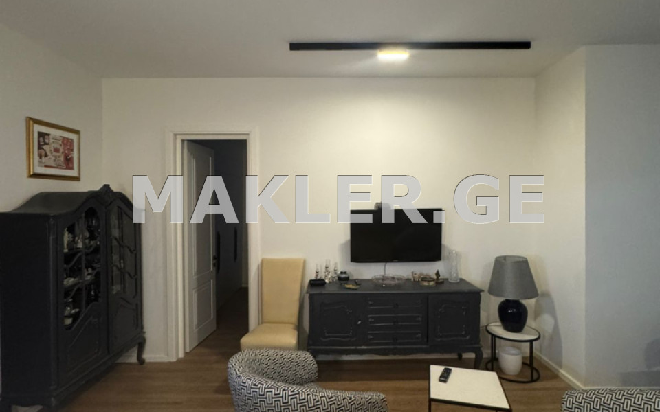 The apartment is located in Vake, in the Center Point building. It has been renovated to the highest quality and is furnished with tasteful furniture.