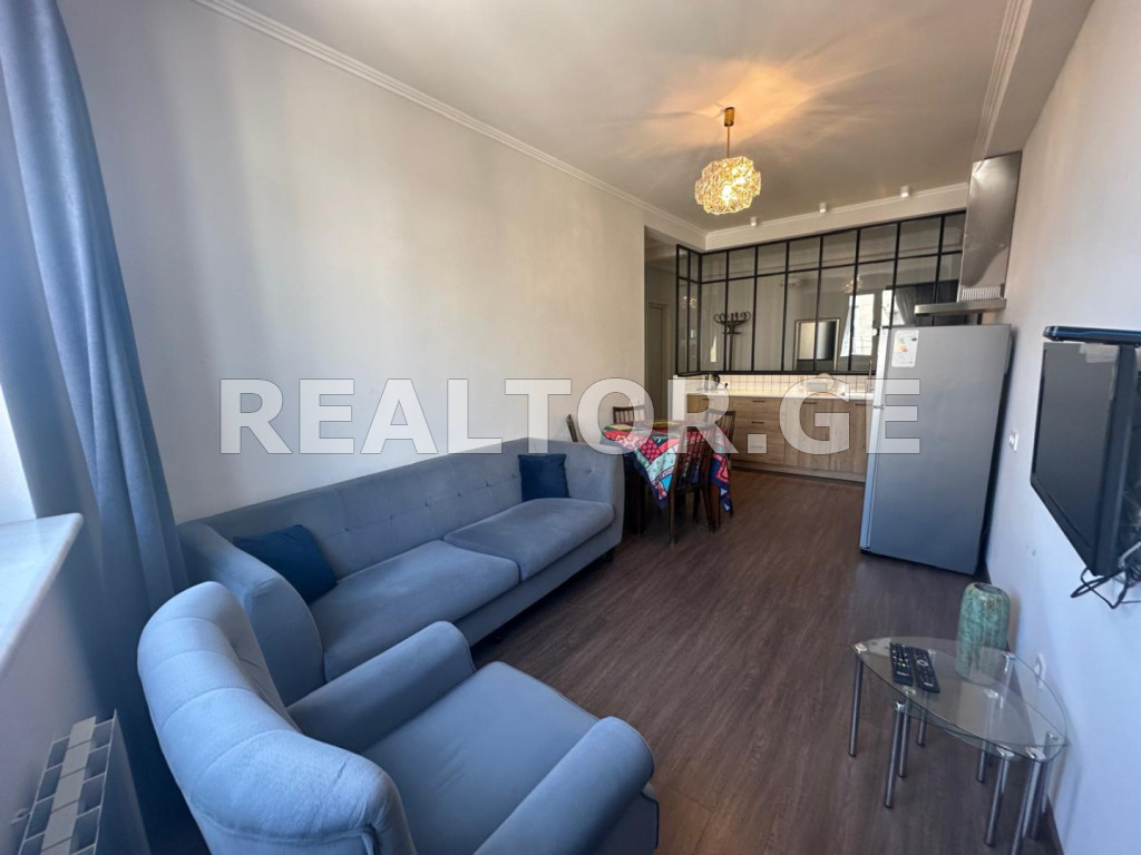 For sale 49 sq.m. 2-room, studio-type apartment, in a newly built building, on Shatberashvili Street. The apartment is fully equipped with household appliances and furniture. The tenant has his own dressing room; the building is served by 24-hour security, the perimeter is monitored by video surveillance cameras.