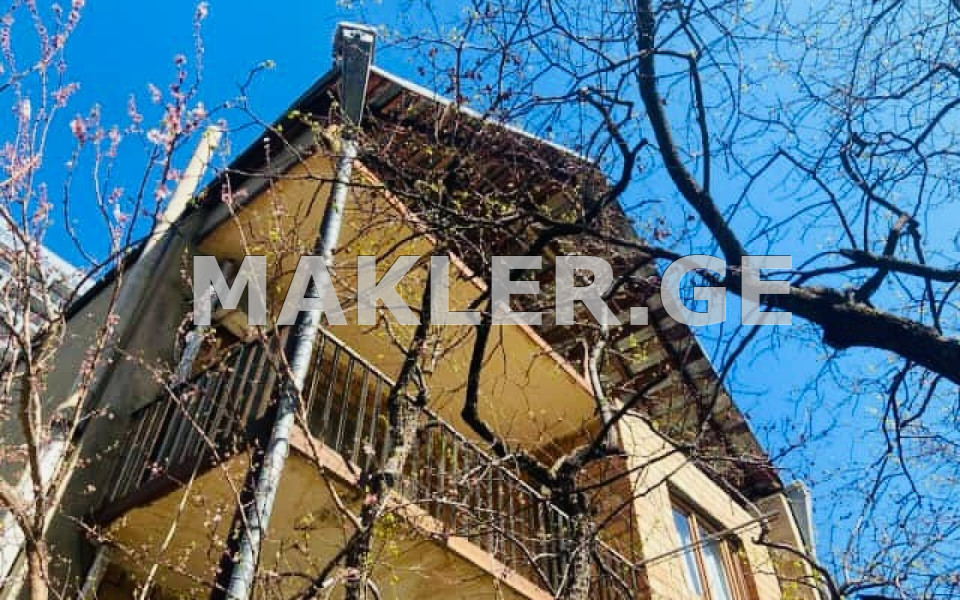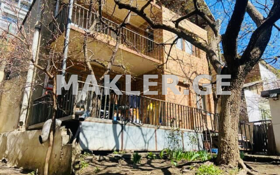 For sale is a two-story private house with an attic, its own yard. On Natakhtari Street (Dolidze), total area 255 sq.m., yard 300 sq.m. With a fireplace, Makagoni parquet, bathrooms on both floors. With a 12 sq.m. capital basement, central heating. The house is built of Metekhi brick.