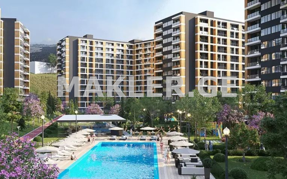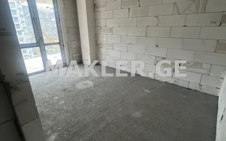 A 3-room apartment is for sale in a newly built and completed complex on Kalandadze Street. The floor in the apartment is tiled and the balcony is tiled.