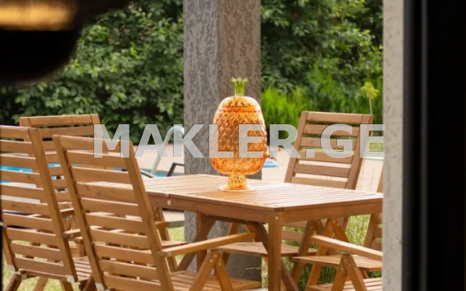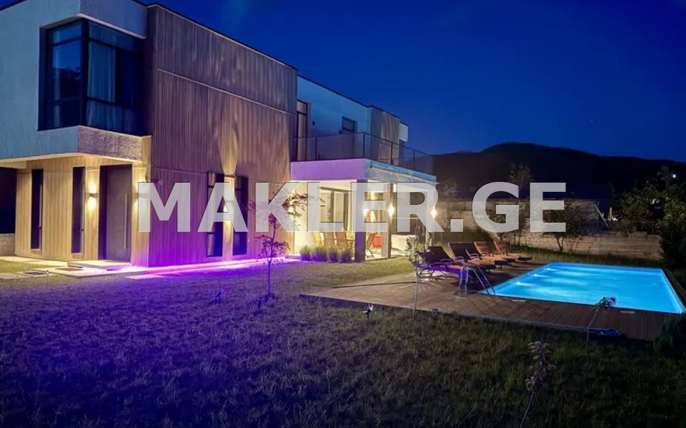 Modern house for sale with a pool, renovated and furnished. With beautiful views. Pool 12x4, heated. 5 bedrooms + living room. Underfloor heating. Energy-efficient walls with insulation. With a garage and parking for 6 cars. With many fruit trees. House area 280 sq m, land area 1500 sq m. Automatic irrigation system. Fully equipped with smart home functions. The house is located 5 minutes walk from the center of Saguramo, in the village of Bissevgeni.