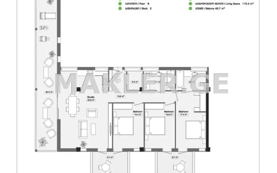 - Balcony : 2