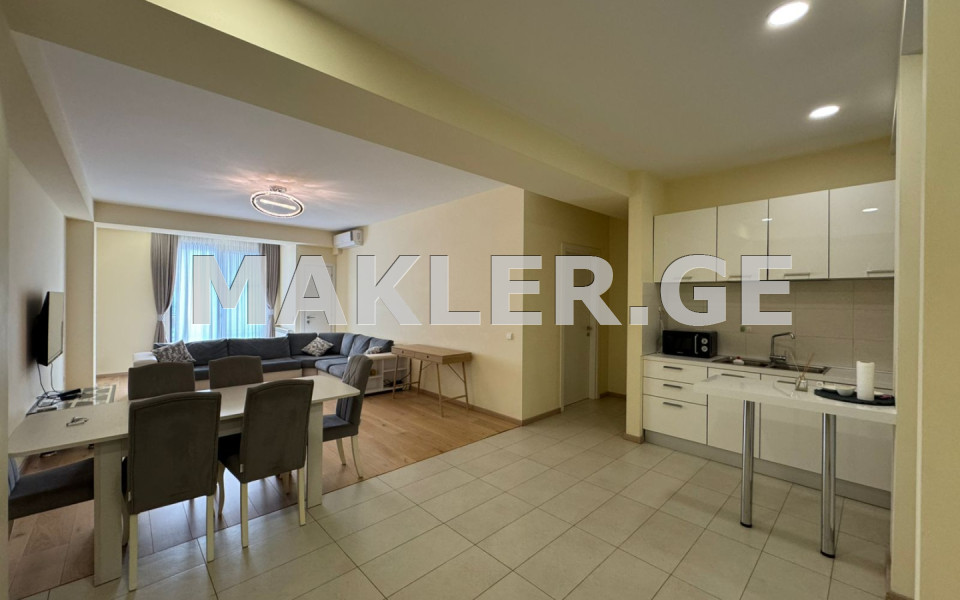 A renovated, bright, sunny, corner 2-room apartment is for rent in Vake, on Chavchavadze Avenue, in the prestigious new building "Archi". The apartment has a studio-type living room, 1 bedroom with its own wardrobe, 1 bathroom and a balcony with a view of Chavchavadze Avenue.