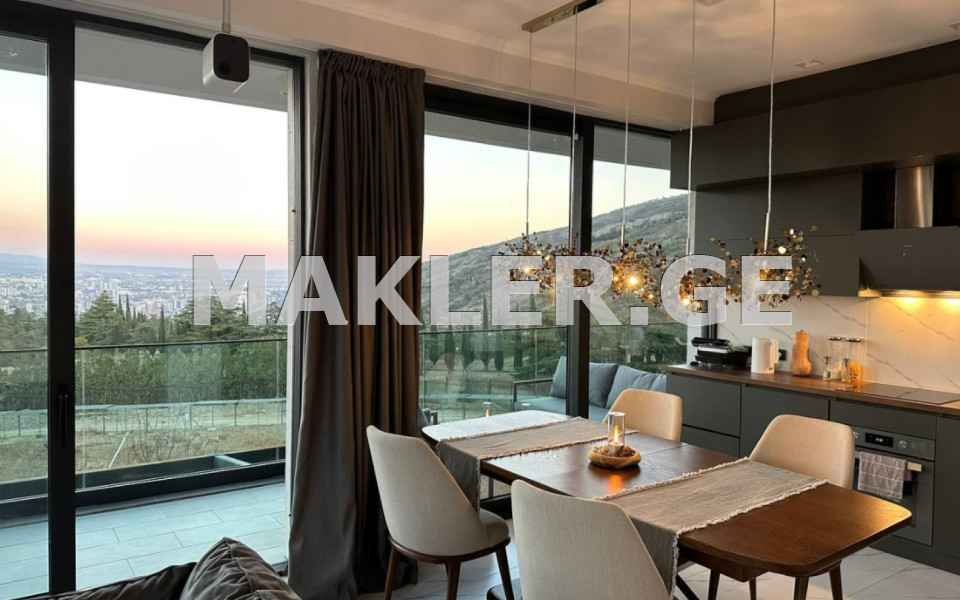 Apartment for sale in Krtsanis, in premium residential complex Villa Residence. A new design overhaul, the smart home system that can be used to control lights, curtains and air conditioners with your voice. Smart lock, fingerprint access. Total area of the apartment: 113.7 sq.m. Floor: 2 The apartment has a large kitchen-living room, 2 bedrooms, 2 bathrooms, terrace, panoramic floor-to-ceiling windows. A stunning view of the entire city. Well-developed infrastructure: swimming pool with sandy beach, school and kindergarten, multipurpose center, tennis courts, golf course, sports fields....