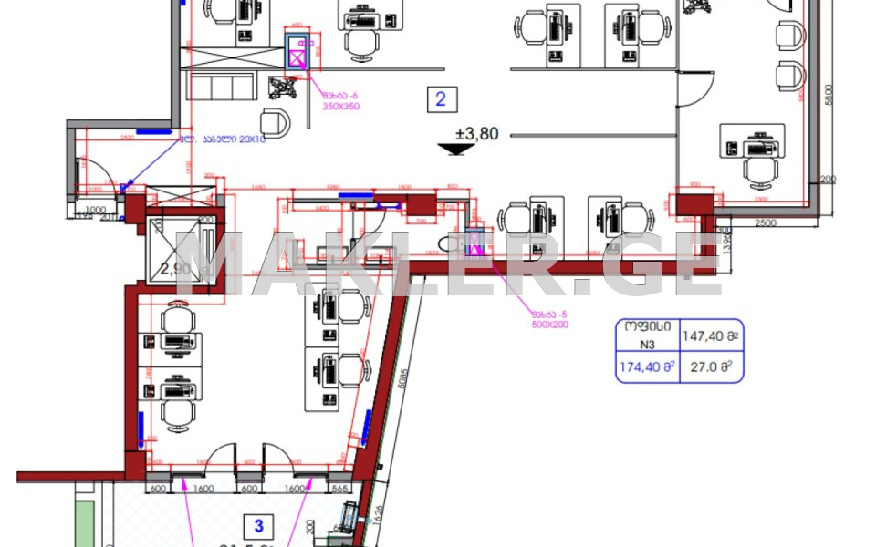 ტიხრები მოეწყობა მყიდველის სურვილით;