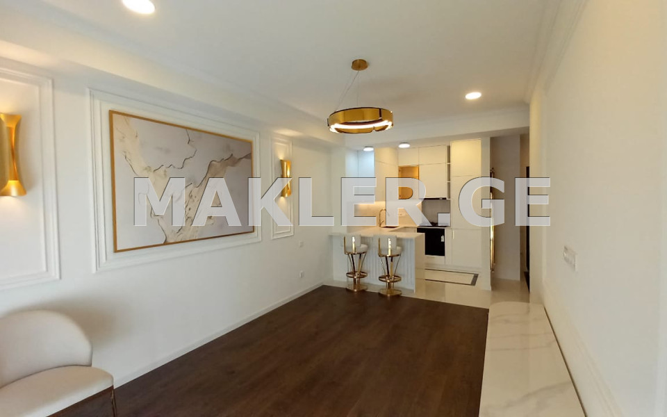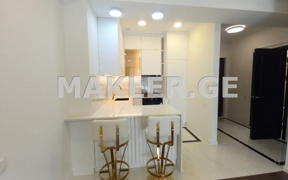 ახალგარემონტებული, უცხოვრებელი, გამოყენებულია უმაღლესი ხარისხის მასალები (გერმანული ლამინატი, ესპანური მეტლახი და სხვა..), ბინა გაწყობილია ავეჯით და ტექნიკით, სამზარეულო არის ჩაშენებული ტექნიკით, ჭერზე და კედლებზე არის ორიგინალური განათებები, ბინაში არის ავეჯის და ტექნიკის სრული კომპლექტები ყველა დეტალის გათვალისწინებით, ულამაზესი, გემოვნებიანი დიზაინი შეხამებულია ძალიან მაღალ ხარისხთან.