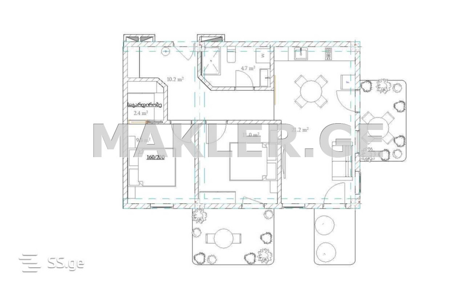 - ფართობი 80 m²