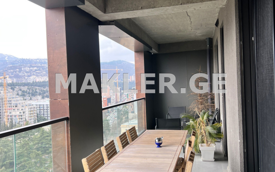 ბინა არის კუთხის - ჯამში 133 კვადრატი, ერთი დიდი აივნითა და ვერანდით, ულამაზესი ხედით როგორც ფუნიკულიორსა და იპოდრომზე (მომავალ ცენტრალურ პარკზე), ასევე თამარაშვილის ქუჩაზე.