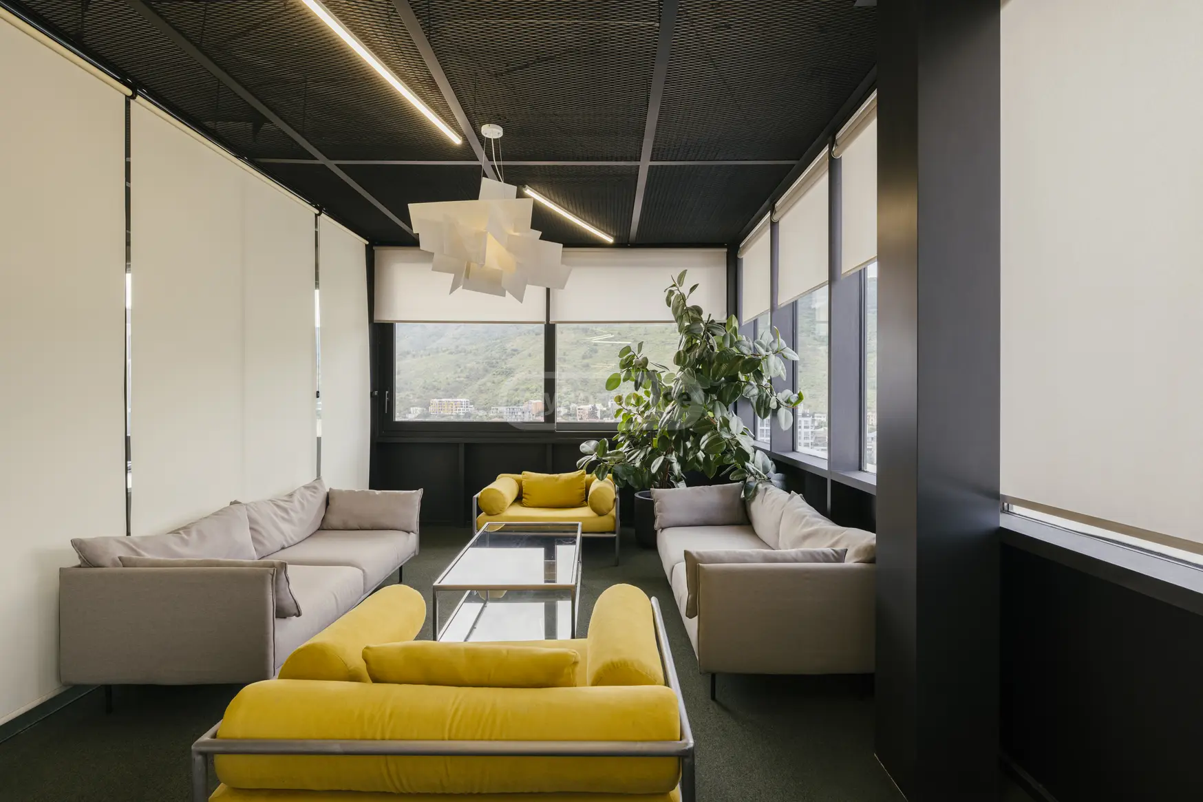 შენობის პირველ სართულზე განთავსებულია სავაჭრო ცენტრი, ჰიპერმარკეტი აგროჰაბი და ა.შ.
