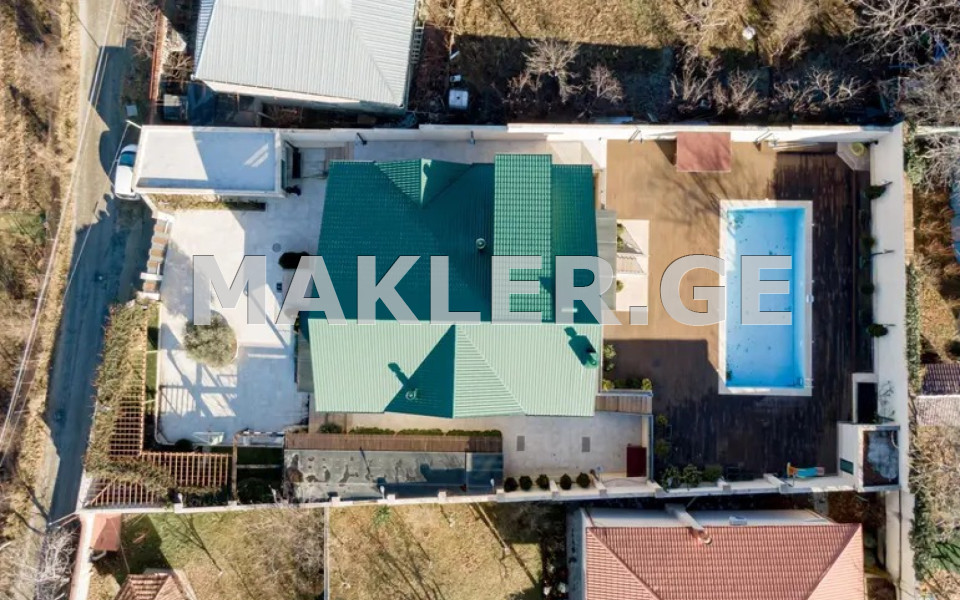 ეზოში მოწყობილია საკუთარი, დიდი ზომის აუზი – 12 მ სიგრძის და 5.2 მ სიგანის.