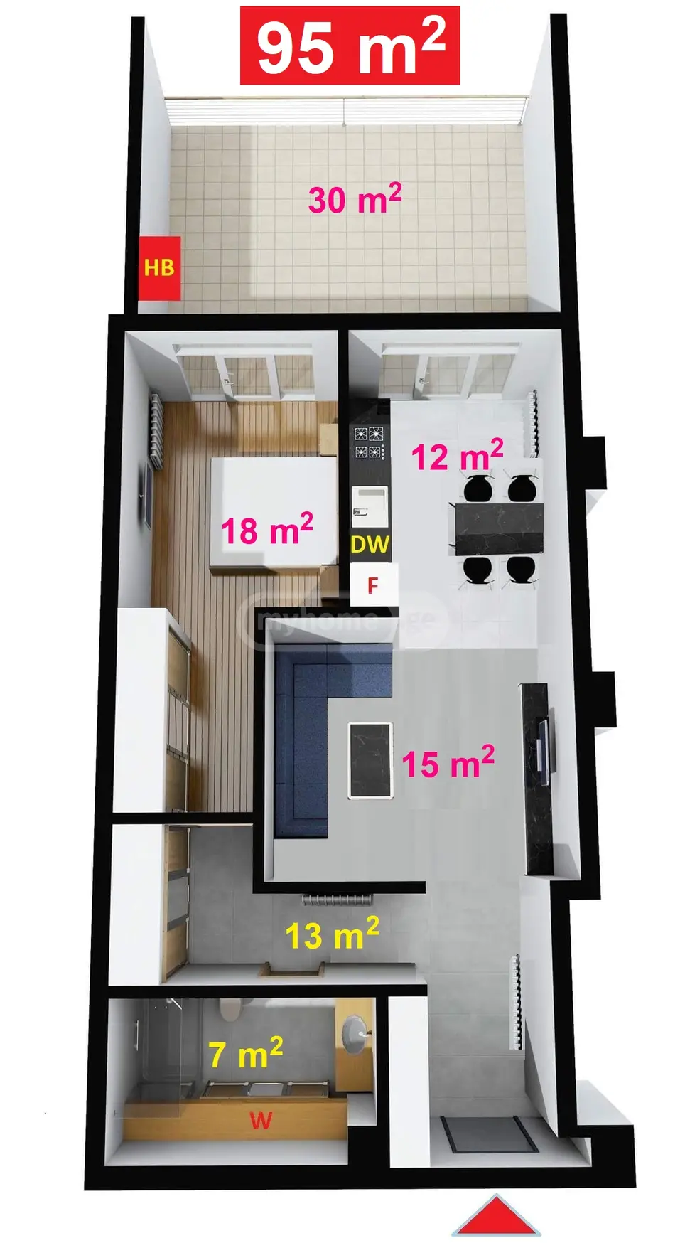 - ფართობი 95 m²