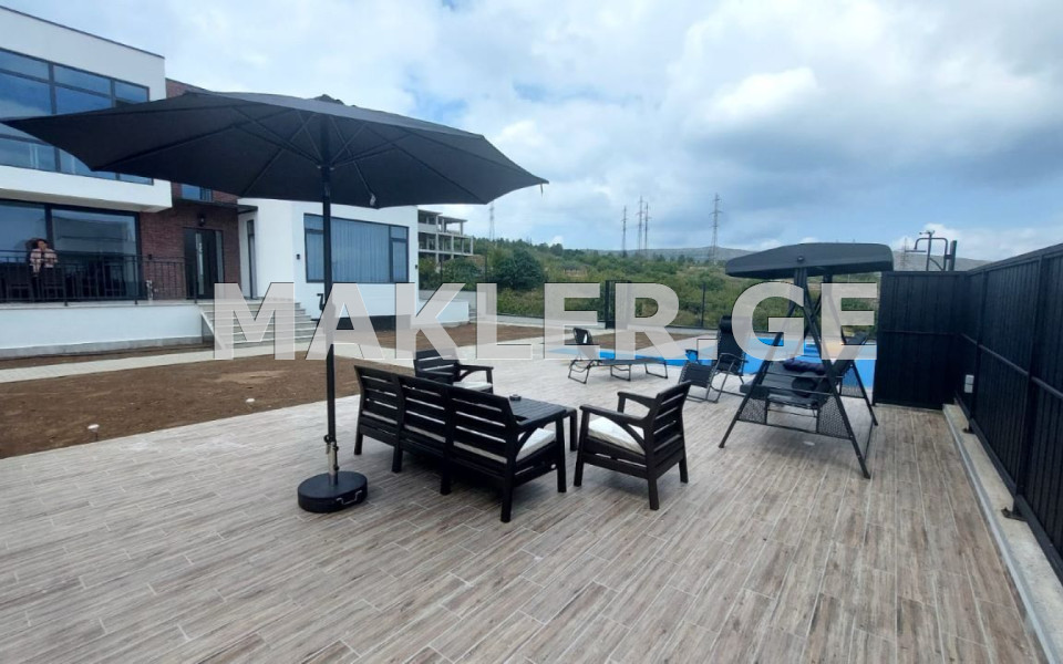 სამრეცხაო ოთახით (ბეისმენტით), 2 ვერანდით, აუზით (აუზის გათბობა შესაძლებელია), აუზის გარშემო 70 კვმ კომფორტული სივრცით, გარე სამწვადით (ბარბექიუ, პროდუქტების მაგიდით და ონკანიანი ნიჟარით), 3 ადგილიანი პარგინგით (დისტანციური მართვის ჭიშკრით).