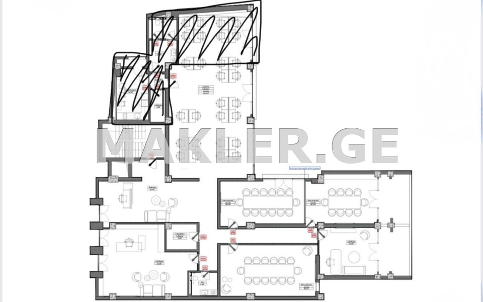 ფართო მოიცავს 8 ოთახს, საიდანაც 5 არის სამუშაო სივრცე, 2 საპირფარეშო, და 1 სამზარეულო, ასევე ვერანდა