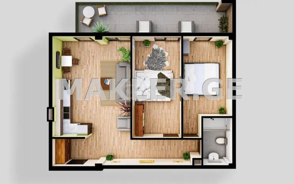 - Спальни : 2